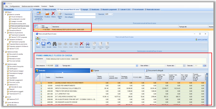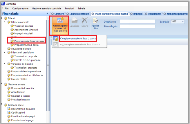 - Creazione del piano annuale dei flussi di cassa (da parte dell’ufficio RAGIONERIA)