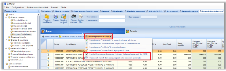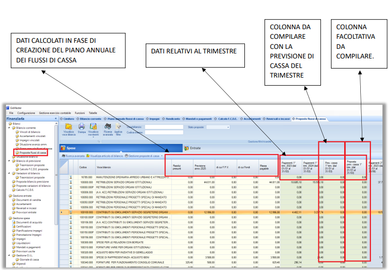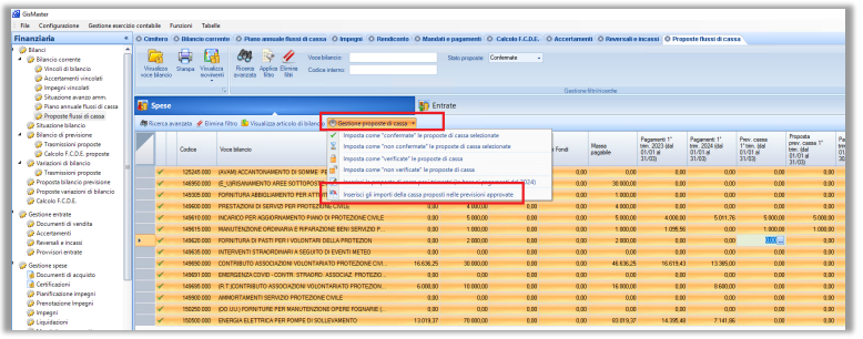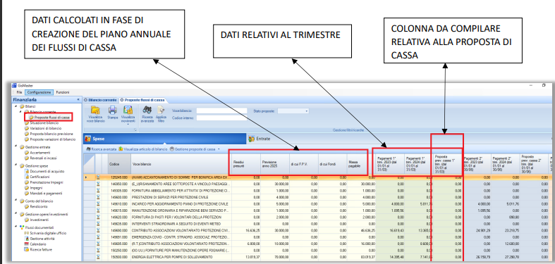 - Compilazione delle proposte di cassa per ciascun capitolo del bilancio (da parte dei vari uffici se l’ente lo desidera, altrimenti rimane in carico all’ufficio RAGIONERIA)
