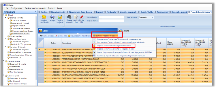 - segnarli come “confermati” tramite il pulsante “Gestione proposte di cassa” → ”Imposta come confermate le proposte di cassa selezionate”. (spunta verde per tenere traccia di quelli già gestiti)