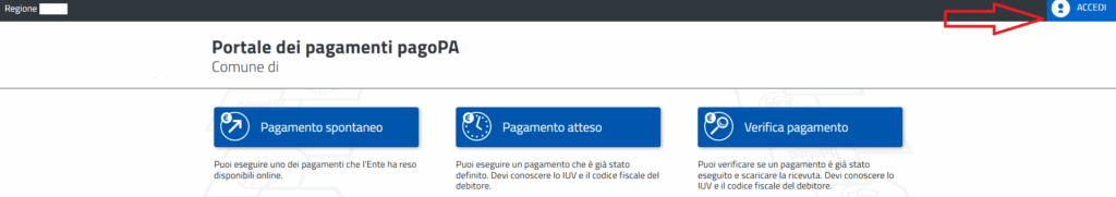 Per la visualizzazione dei dettagli dei pagamenti PagoPa autentificarsi tramite il tasto “ACCEDI” al seguente portale sostituendo nel link dove presenti le “X” il codice istat del comune : https://www.pa-online.it/GisMasterWebS/PagWeb/PagWeb.aspx?IdCliente=XXXXXX&IdPage=Main